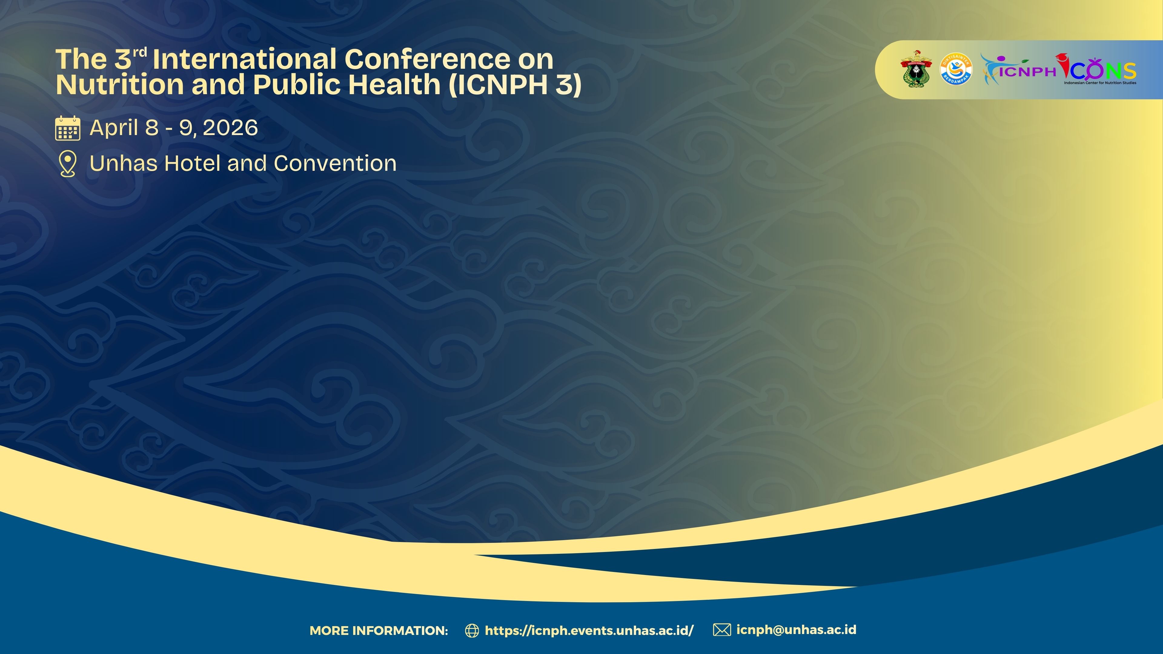 Welcome to The 3rd International Conference of Nutrition and Public Health (ICNPH 2026), taking place on April 8–9, 2026, in the beautiful city of Makassar, Indonesia, under the theme: